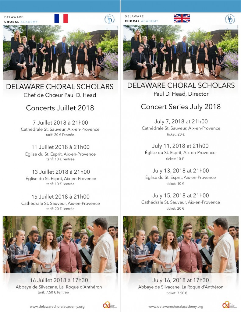 Comme chaque année depuis 3 ans, l’Association des Jumelages et des Relations Internationales d’Aix-en-Provence a le plaisir d’accueillir la Chorale universitaire du Delaware qui se pose à Aix pour son symposium d’été 2018.