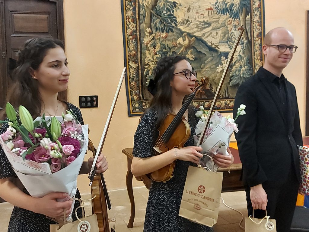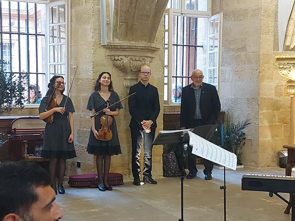 C’est avec beaucoup de grâce et d’élégance que les sœurs jumelles violonistes virtuoses d’Arménie Yeva et Sara Harutyunyan accompagnées par le talentueux pianiste Alain Pietka on fait raisonner la musique arménienne devant un public aixois enchanté, venu nombreux découvrir ces jeunes talents.