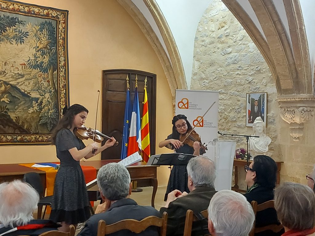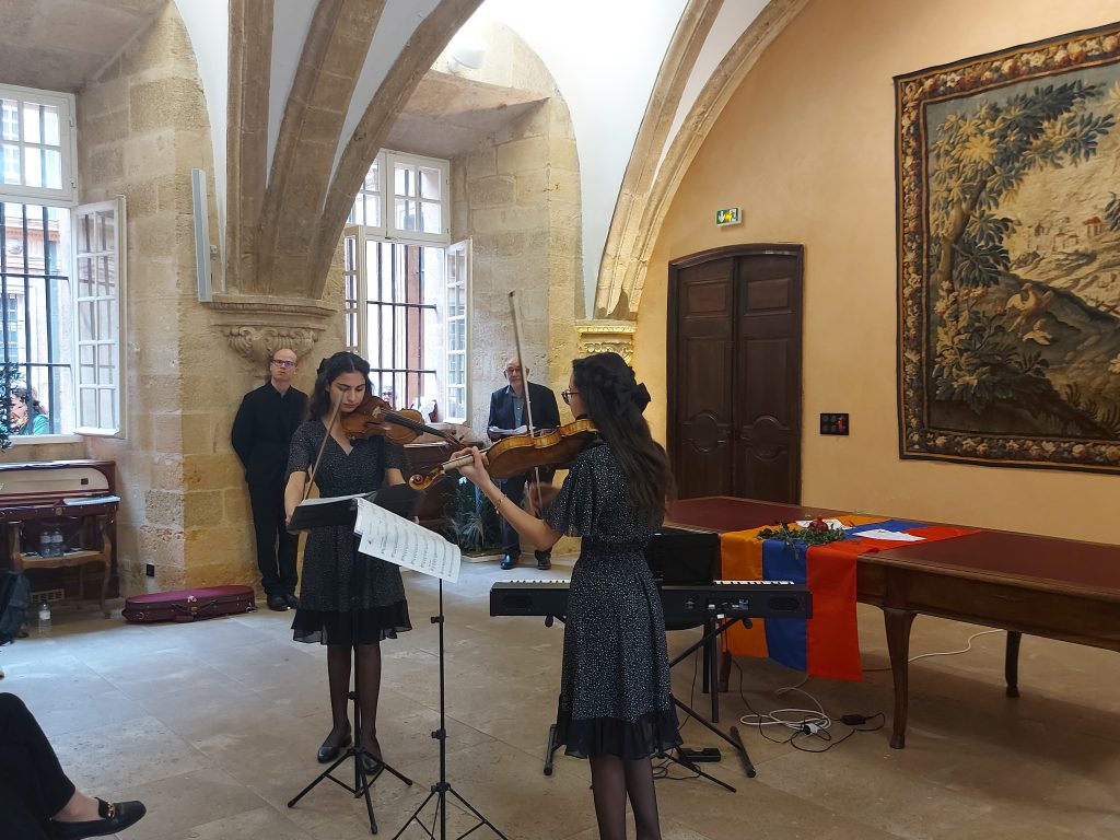 Dans le cadre du jumelage entre Aix et Masis, l’Association des Jumelages et des Relations Internationales d’Aix-en-Provence a organisé ce mercredi 22 avril 2026 dans la salle des mariages de l’Hôtel de Ville d’Aix-en-Provence, un concert exceptionnel de jeunes violonistes d’Arménie.
