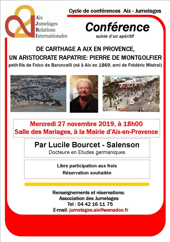 Conférence « DE CARTHAGE A AIX EN PROVENCE, UN ARISTOCRATE RAPATRIE : PIERRE DE MONTGOLFIER, petit-fils de Folco de Baroncelli (né à Aix en 1869), ami de Frédéric Mistral»