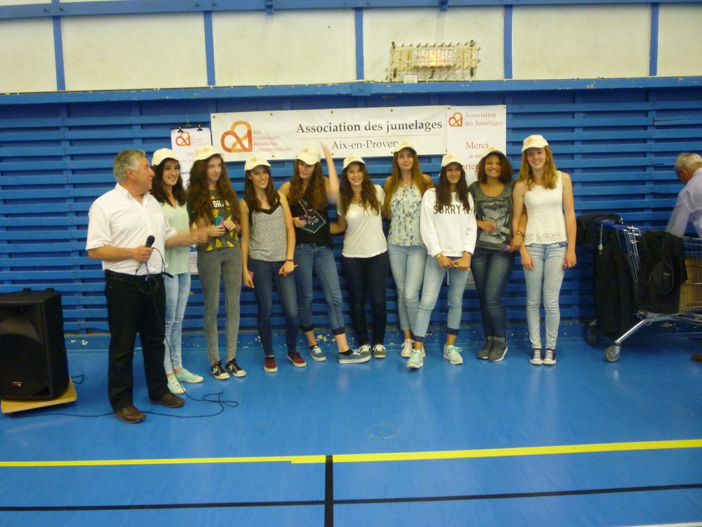 L’Association des Jumelages, en collaboration avec le Pays d’Aix Venelles Volley Ball (PAVVB) a organisé une animation Volley Ball. Tout d’abord le vendredi 8 Mai, un tournoi de Volley féminin cadettes s’est déroulé au gymnase Georges Carcassonne d’Aix.