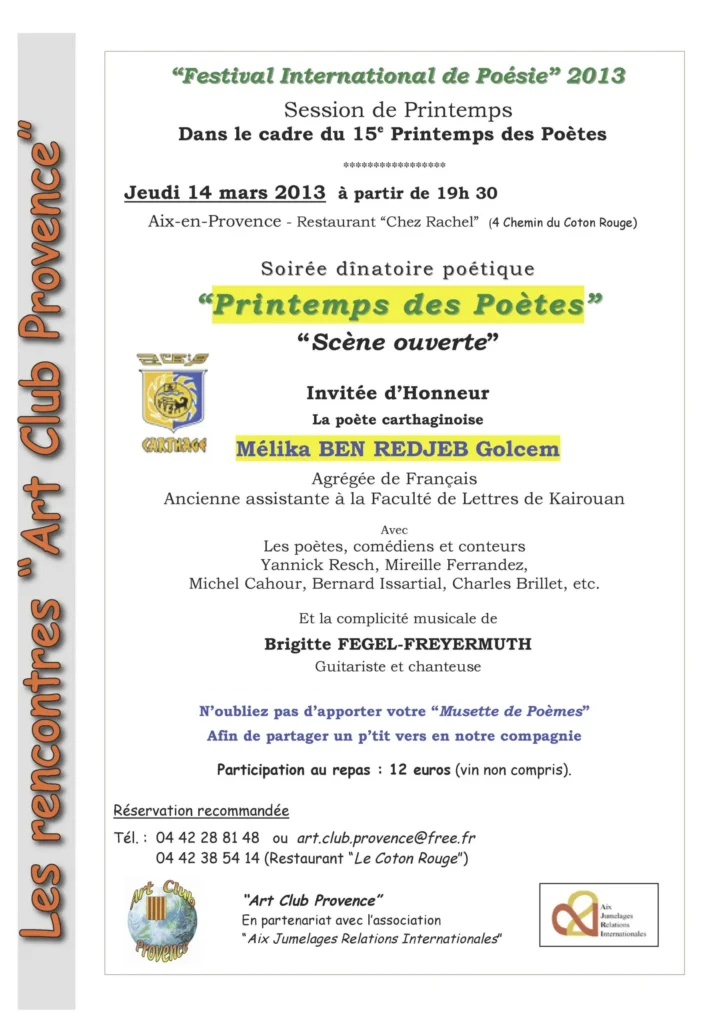 Comme chaque année, Art Club Provence s’inscrit dans l’évènement national du « Printemps des Poètes ».Au cours de cette session de printemps…