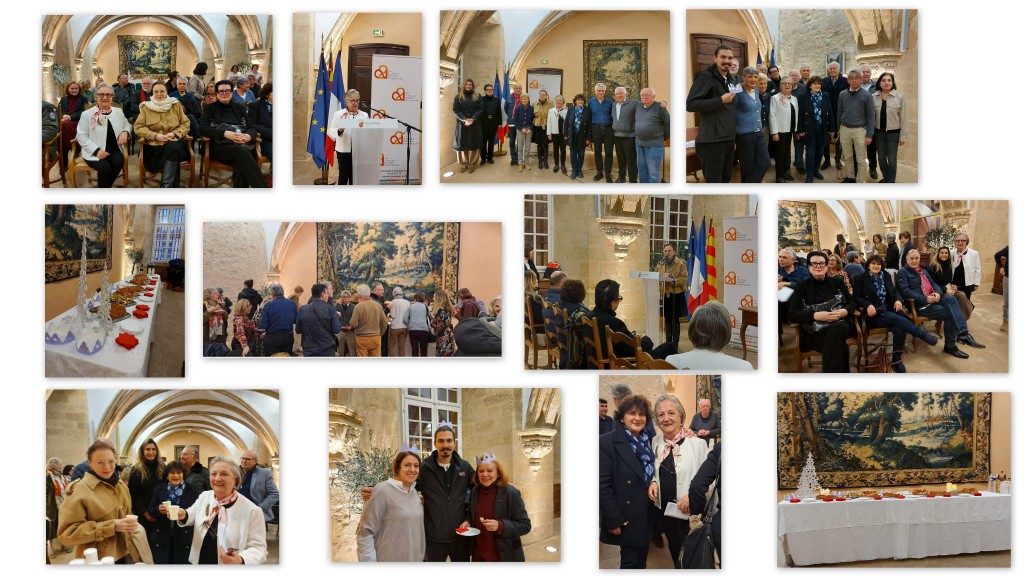 Le mercredi 7 janvier, l’Association des Jumelages et des Relations Internationales d’Aix-en-Provence a tenu sa soirée des vœux autour de la traditionnelles galette des Rois dans l’emblématique Salle des Mariages de l’Hôtel de Ville d’Aix-en-Provence. Était présente à la cérémonie, Madame le Maire d’Aix-en-Provence, Sophie JOISSAINS, ainsi que nombreux Elus de la Ville, des représentants d’associations et les membres de l’Association des Jumelages d’Aix.