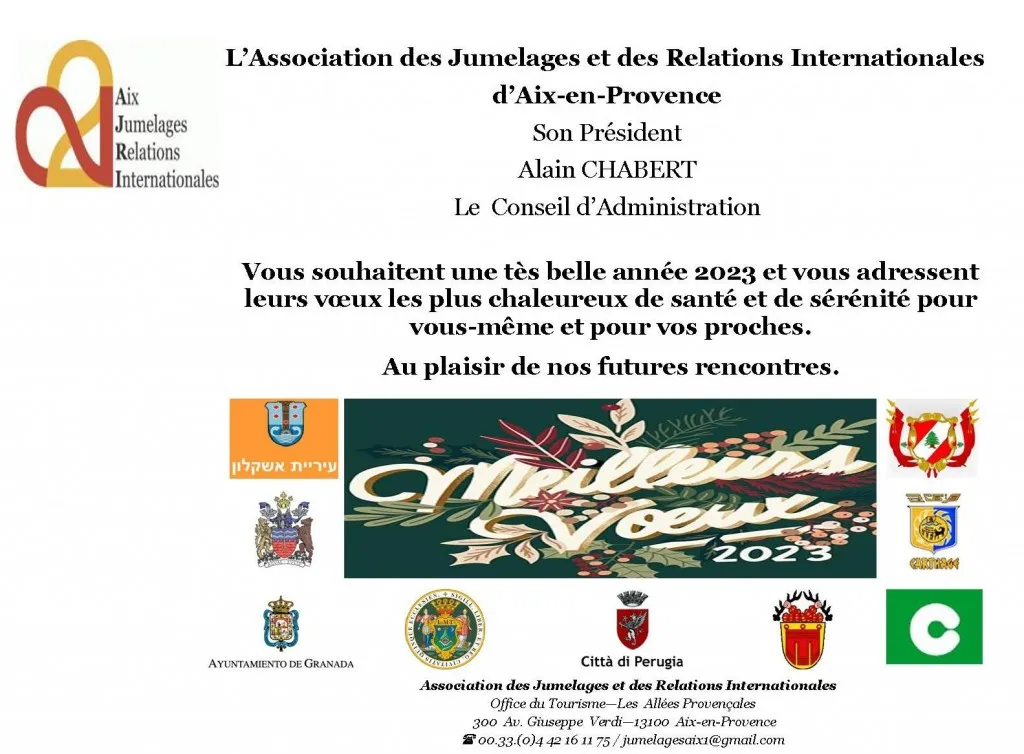 L’ASSOCIATION DES JUMELAGES ET DES RELATIONS INTERNATIONALES D’AIX EN PROVENCE VOUS CONVIE A LA 22ÈME EDITION DU MARCHE INTERNATIONAL DES…