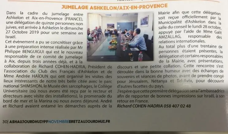 Dans le cadre du jumelage entre les villes d’Aix en Provence et d’Ashkelon, un voyage en Israël a été organisé…