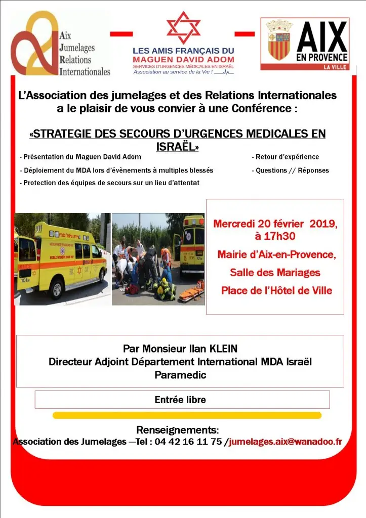 Dans le cadre du jumelage Aix en Provence/Ashkelon, le Maguen David Adom (Service de secours des urgences médicales en Israël)…