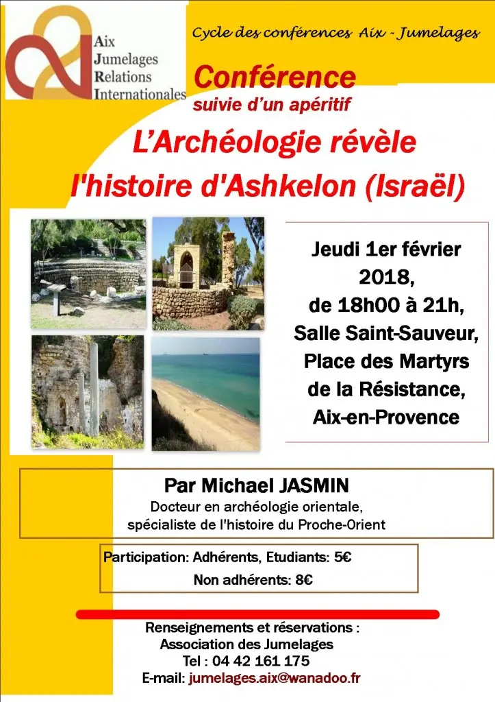 Dans le cadre du jumelage entre Aix et Ashkelon, l’Association des Jumelages et des Relations Internationales d’Aix-en-Provence vous convie à…
